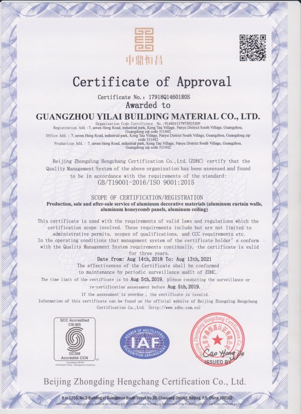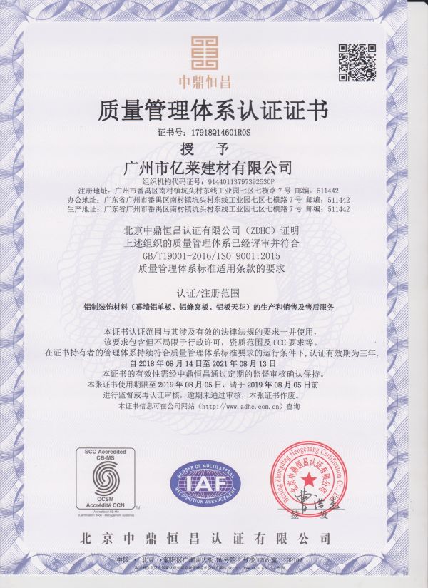 About us廣州市億萊建材有限公司廣州市億萊建材有限公司成立于2007年1月是一家專業(yè)設計、生產(chǎn)、銷售全系列鋁質天花、集成吊頂、藝術天花板、非標造型金屬天花、室內外鋁單板及鋁蜂巢板幕墻、金屬裝飾工程配套材料的專業(yè)企業(yè);位于南中國經(jīng)濟強區(qū)珠江三角洲的廣州市番禺區(qū)(也是一個技術及資源集中的專業(yè)金屬裝飾材料生產(chǎn)基地);億萊公司屬下品牌:“YILAI億萊”金屬天花&幕墻 及 家居整體吊頂;公司具有年產(chǎn)鋁質天花300萬平方米,非標金屬天花及鋁質幕墻60萬平方米的生產(chǎn)能力。 |